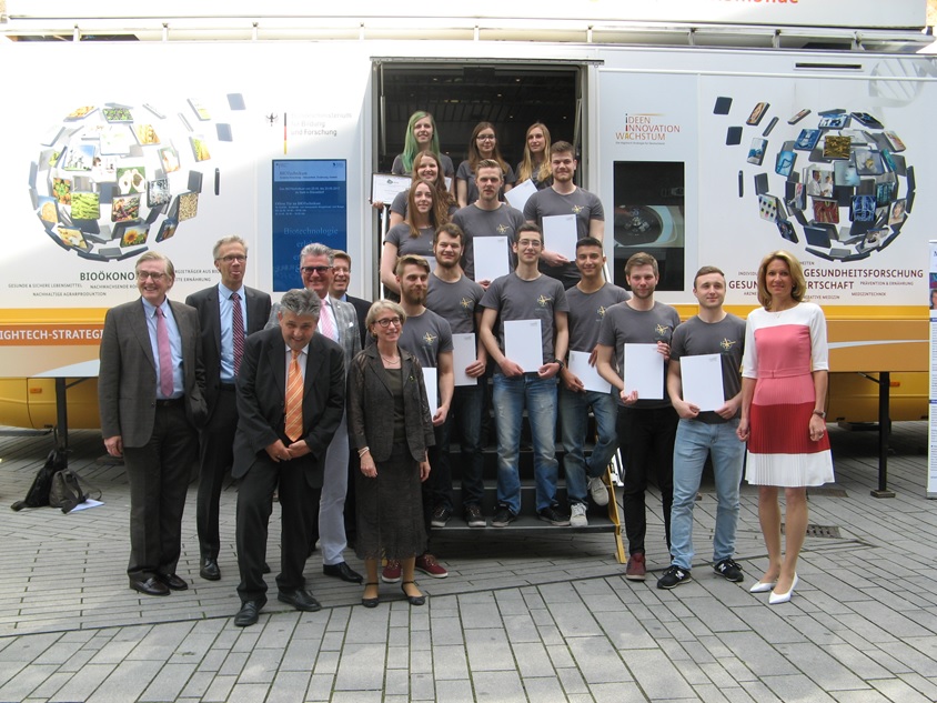 Im Rahmen der Tour machte das BIOTechnikum auf Einladung der Landeshauptstadt Düsseldorf und der MTZstiftung am 22. und 23. Mai 2017 Station auf dem Schadowplatz in Düsseldorf. Höhepunkt war die Verleihung des MTZ®award der HHU an das iGEM-Team 2016 im großen Saal des Hauses der Heinrich-Heine-Universität (HdU). Dazu empfingen wir um 15 Uhr den Oberbürgermeister der Stadt Düsseldorf Herr Thomas Geisel, der die Schirmherrschaft über das BIOTechnikum und den MTZaward der HHU übernommen hat und ein Grußwort sprach.